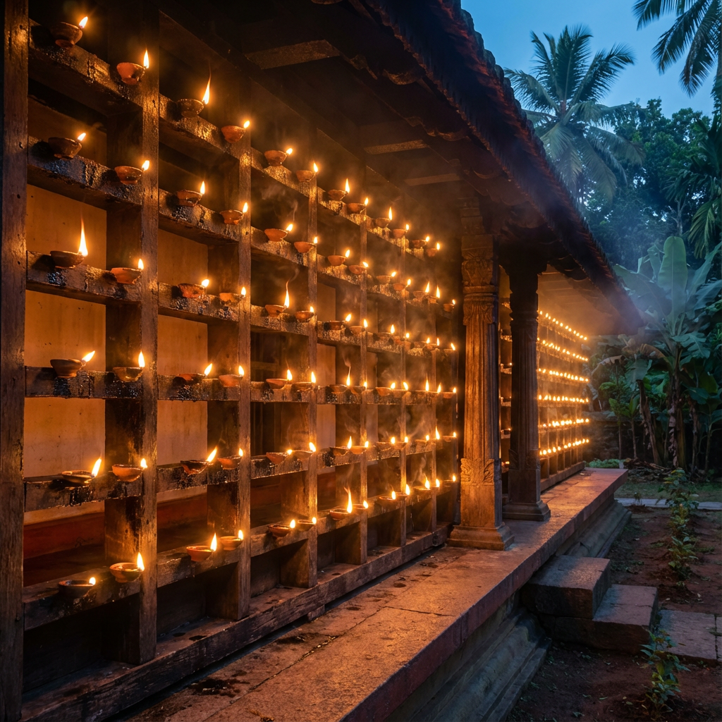 Offer the holy Chuttu Vilakku, a traditional lamp-lighting ritual performed around the deity to remove negativity, invite prosperity, and illuminate your life with peace, protection, and divine grace.